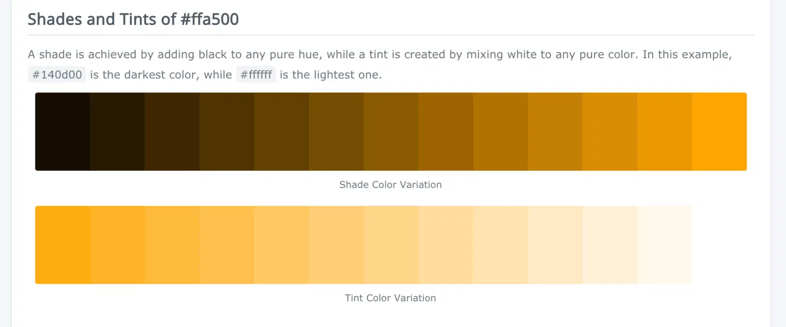 Remember that for every color, there are countless related hues. Warm website design colors such as red, orange, and yellow don’t have to be glaring and bright. Did you know that every color out there has its own page with all the variations of shade & hue and complementary colors? For example below are the shades and tints of one particular shade of red, orange, and yellow. Click on any one of the colors on these color guide pages and you’ll find more gorgeous options in that color range.